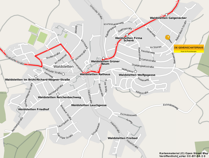 mit dem Bus Linie 3 von Schwäbisch Gmünd kommend